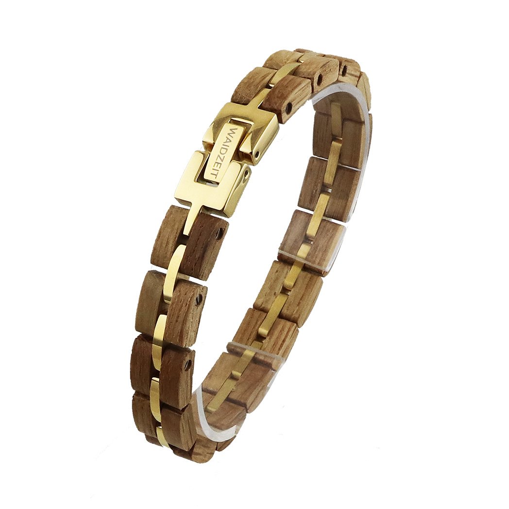 Stylové dřevěné hodinky s dřevěným náramkem? Dokonalá kombinace, která na vaše okolí zaručeně udělá dojem. Kromě jedinečného designu je prvek náramku výjimečný kovovými detaily ve zlaté barvě. Elegantní prvek, který promění již tak krásný náramek v originální módní doplněk.