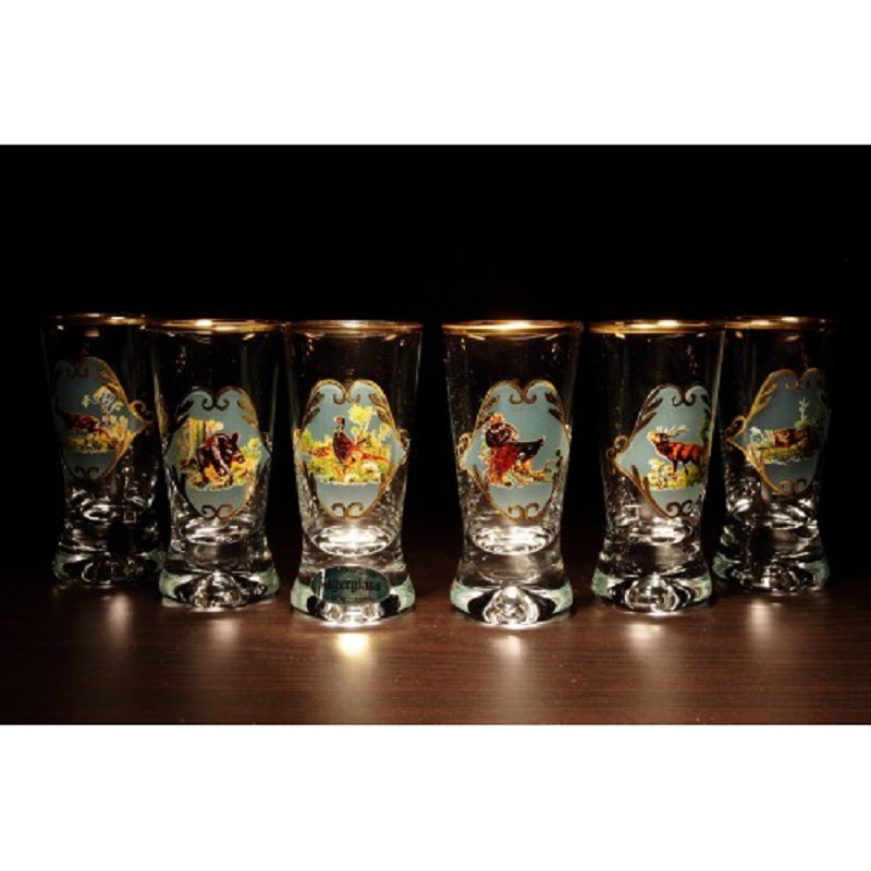 • Tyto malované myslivecké sklenice jsou dekorovány originální technologií zlaceného reliéfu.