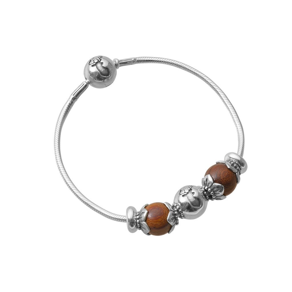 Korálky: santalové dřevo, stříbro ryzosti 925/1
