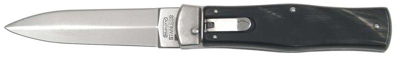 Vyskakovací automatický nôž Mikov 241-NR-1/KP Predator má čepeľ z ocele 420. Rukoväť je vyrobená z byvolieho parohu. Dá sa otvoriť jednou rukou, možno ho vyrobiť pre ľavákov a dodáva sa s koženým puzdrom.