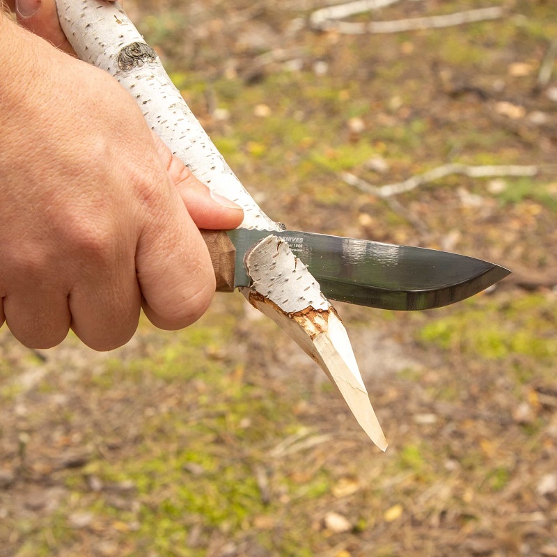 Typ broušení – Scandi grind – usnadňuje práci se dřevem jakékoli tvrdosti a při různých teplotách. Dodává se s ferro tyčí.