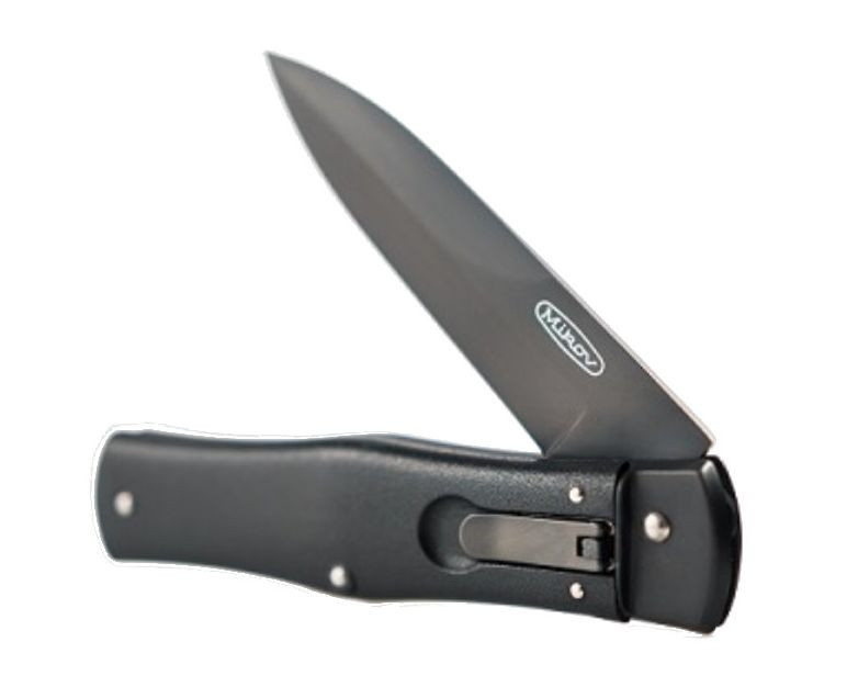Celorčierny vyskakovací automatický nôž Mikov 241-BH-1-BKP Blackout má čepeľ z ocele N690 s DCL povrchom. Rukoväť je z čierneho plastu. Otvára sa jednou rukou, vyrába sa aj pre ľavákov. Dodáva sa s koženým puzdrom.